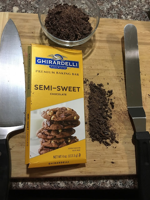 - Chop the chocolate - Use a sharp big knife to chop the chocolate. Try not to use your hands but an offset spatula to scrape and pick up the chocolate. Work in a cool kitchen because the chocolate will start melting. Keep it in a cool dry place until ready to use.
